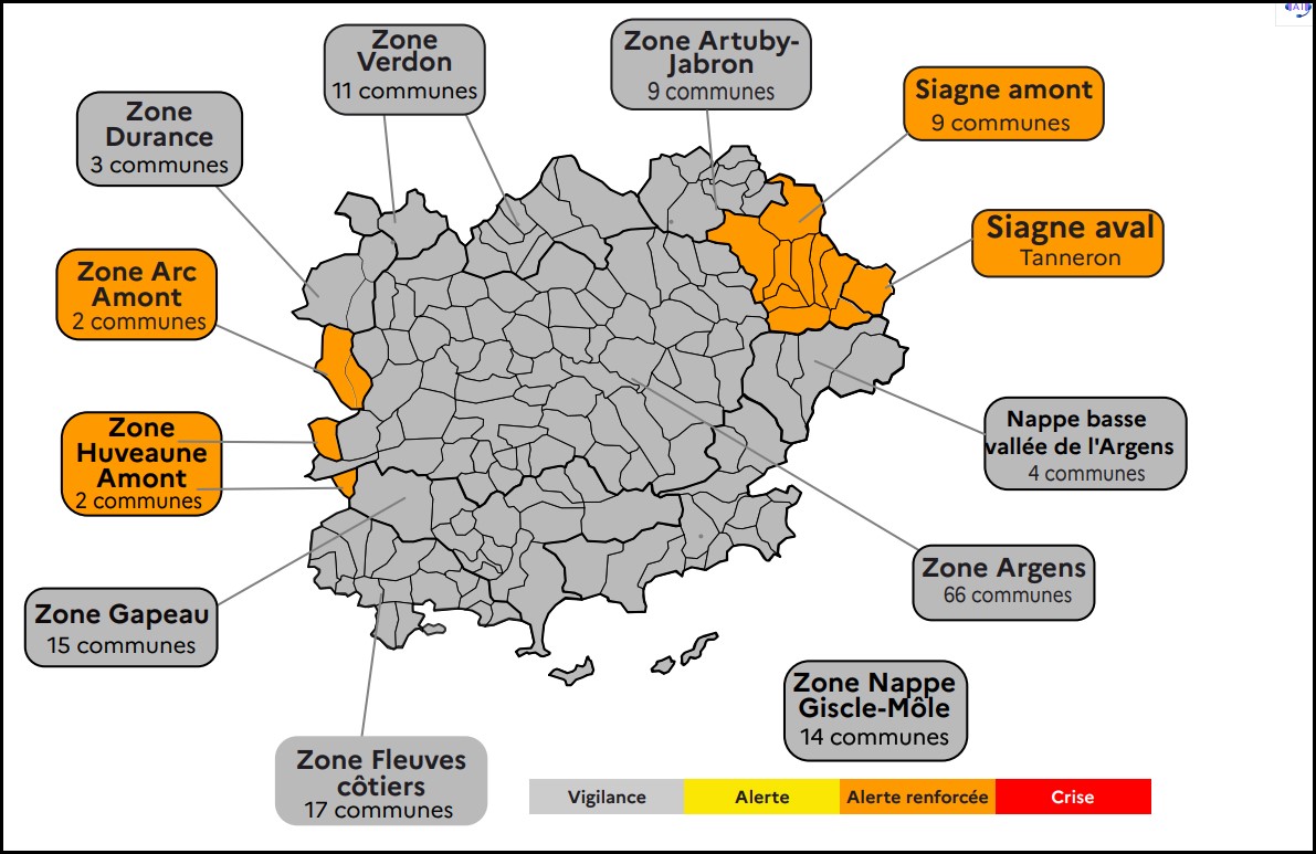 Par arrêté préfectoral, la zone Argens, dont Villecroze fait partie, est placée en vigilance Sécheresse :