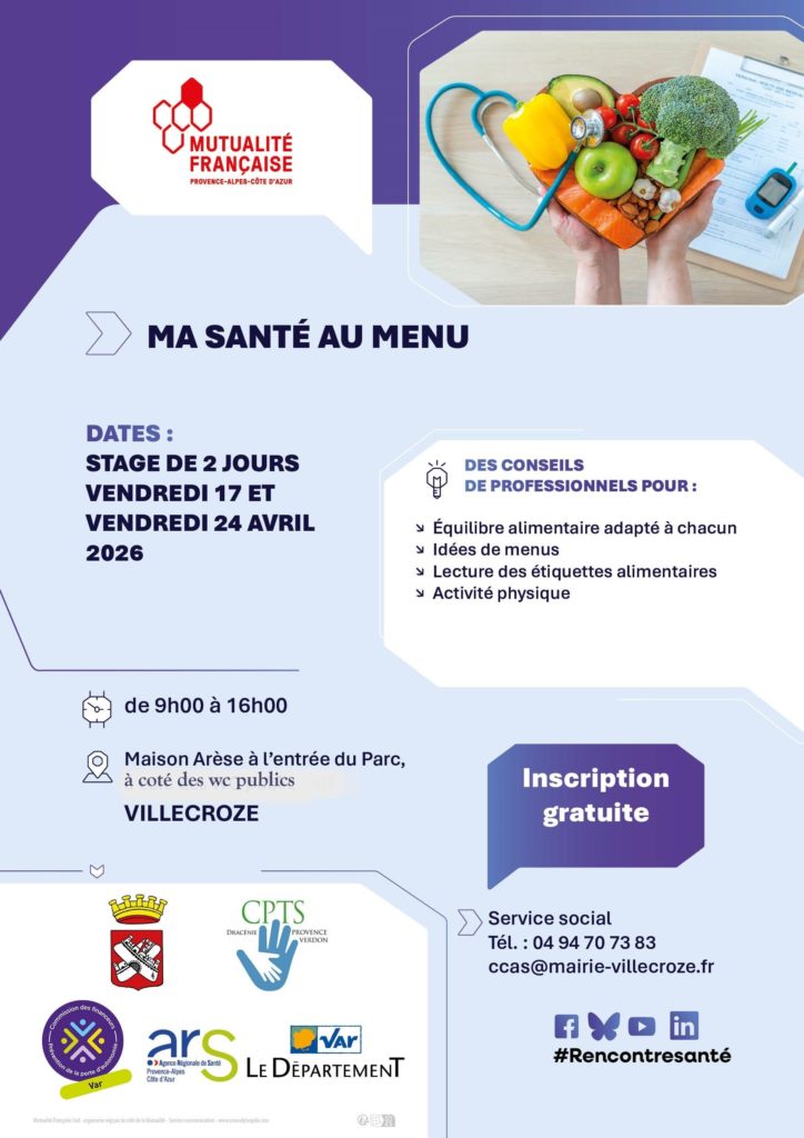 Renseignements et inscriptions auprès du service social au 04 94 70 73 83 ou par mail ccas@mairie-villecroze.fr