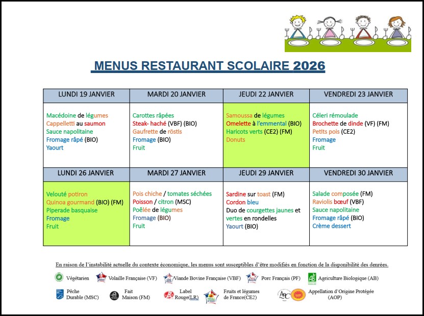 Menus du restaurant scolaire